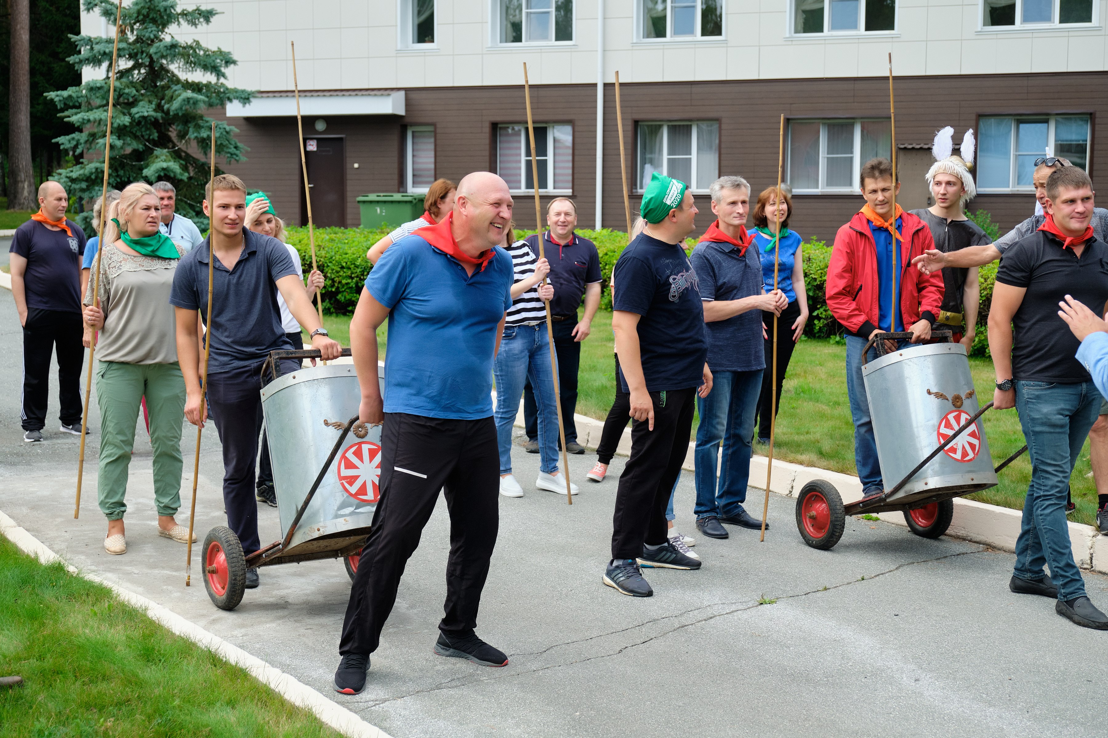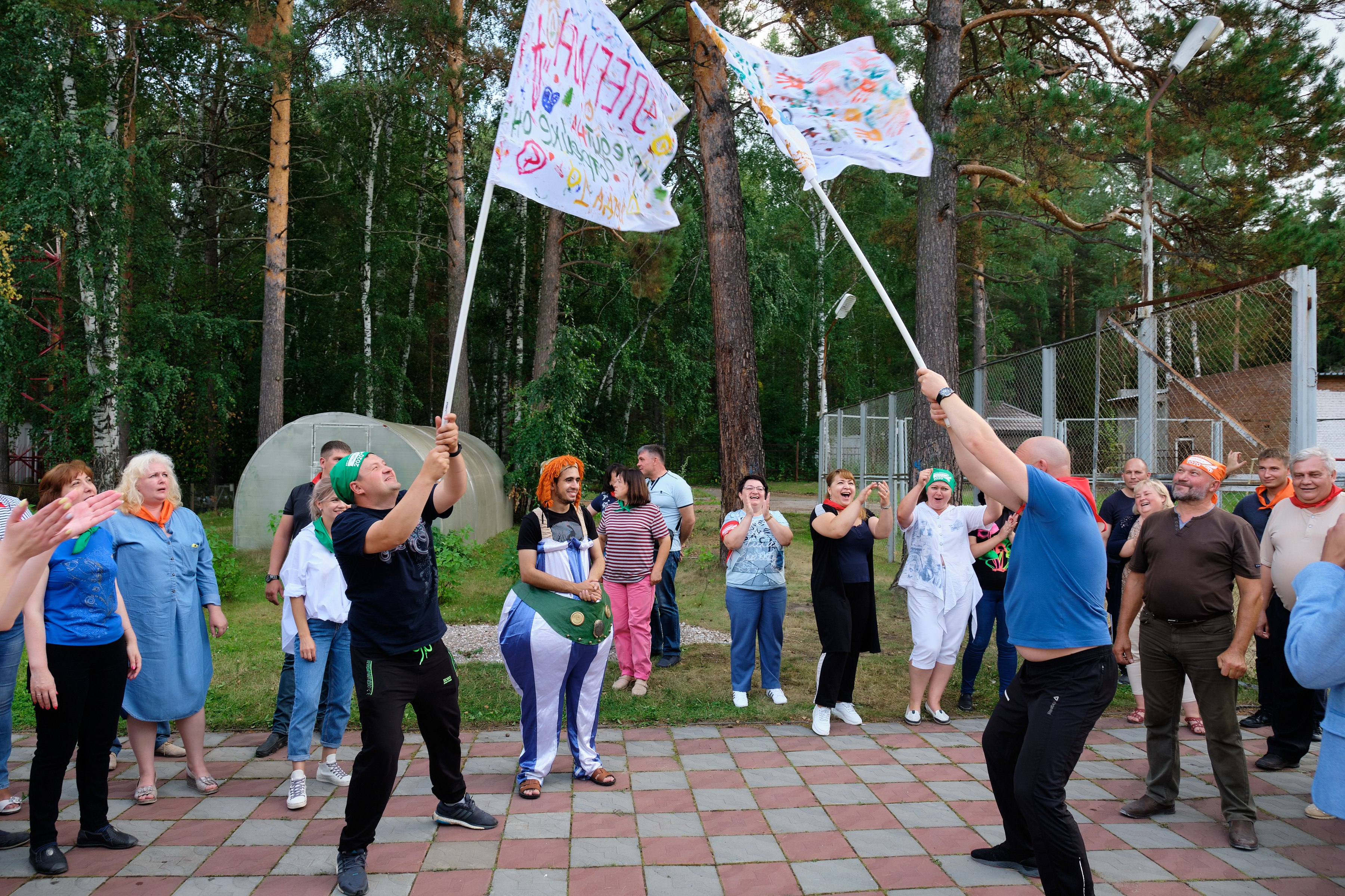 А в субботу заводчане дружным строем двинулись на празднование Дня строителя. Погода в субботу была отличная, ярко светило солнце, поэтому праздник по традиции провели на природе, где всех гостей встречали Астерикс и Обеликс, подготовившие для них развлекательные мега-конкурсы с головоломками, борьбой, а также упражнения на ловкость и смекалку.