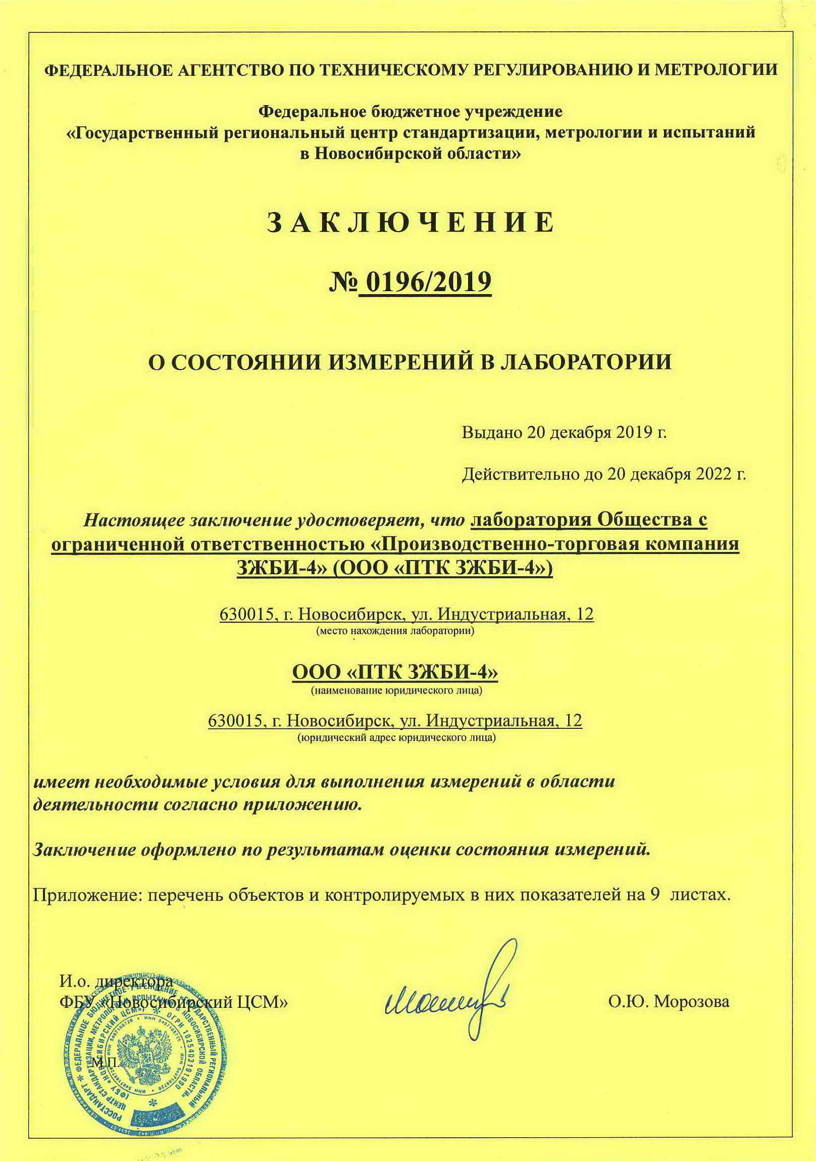 По итогам 2019 года заводская лаборатория подтвердила свой высокий уровень в части повышения квалификации и приобретением оборудования, получением "Заключением о состоянии измерений в лаборатории".